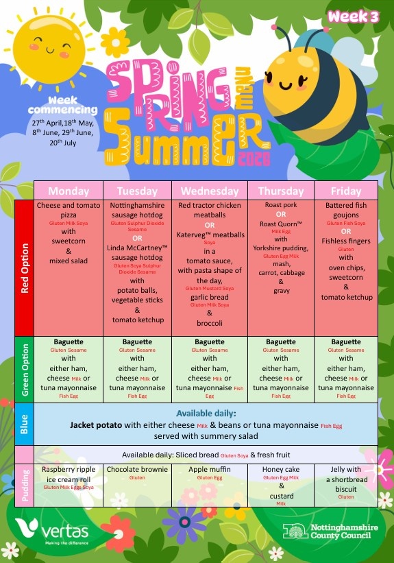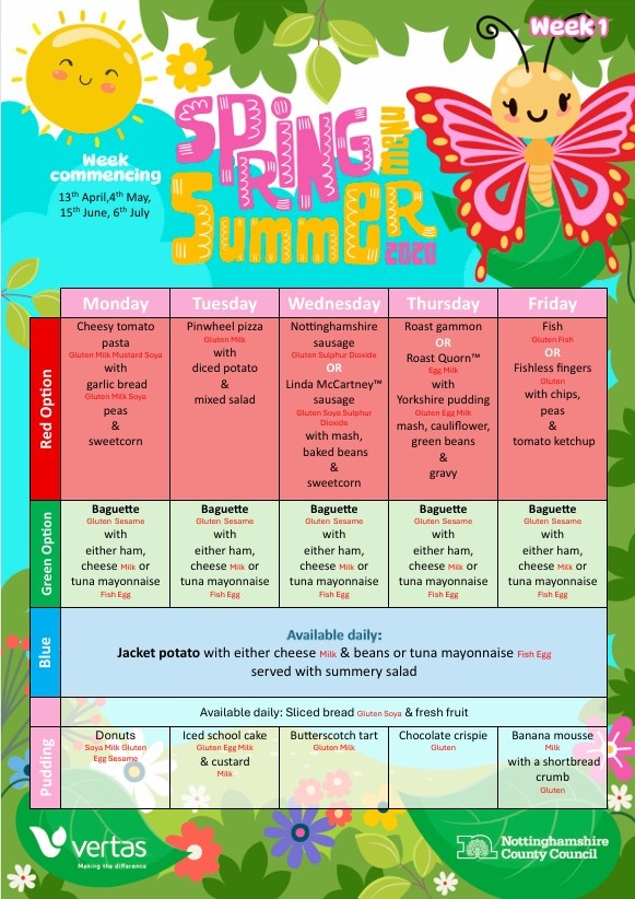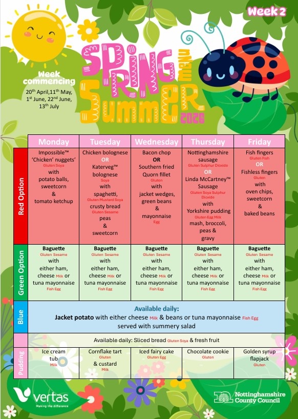 Starting this week we have our new Spring / Summer term school dinner menu.